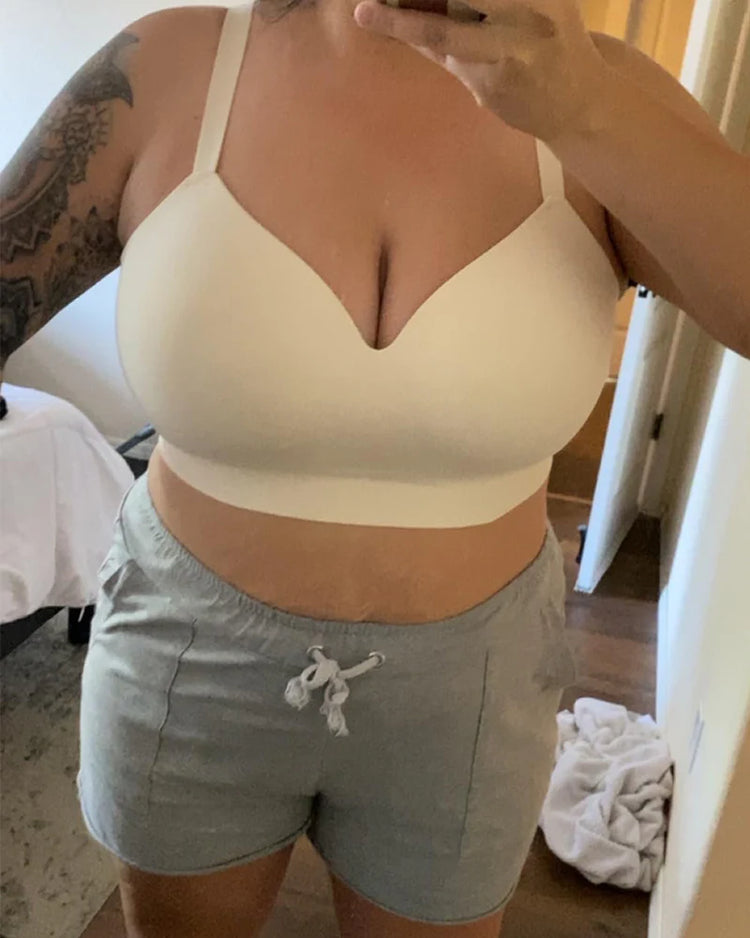 Geniet van de perfecte combinatie van structuur en zachtheid. De vaste cups geven je borsten een mooie vorm en lift, terwijl het beugelloze ontwerp zorgt voor comfort de hele dag door. Zeg maar dag tegen beugels die in je huid snijden en hallo tegen een mooi gevormd silhouet dat aanvoelt als een tweede huid.